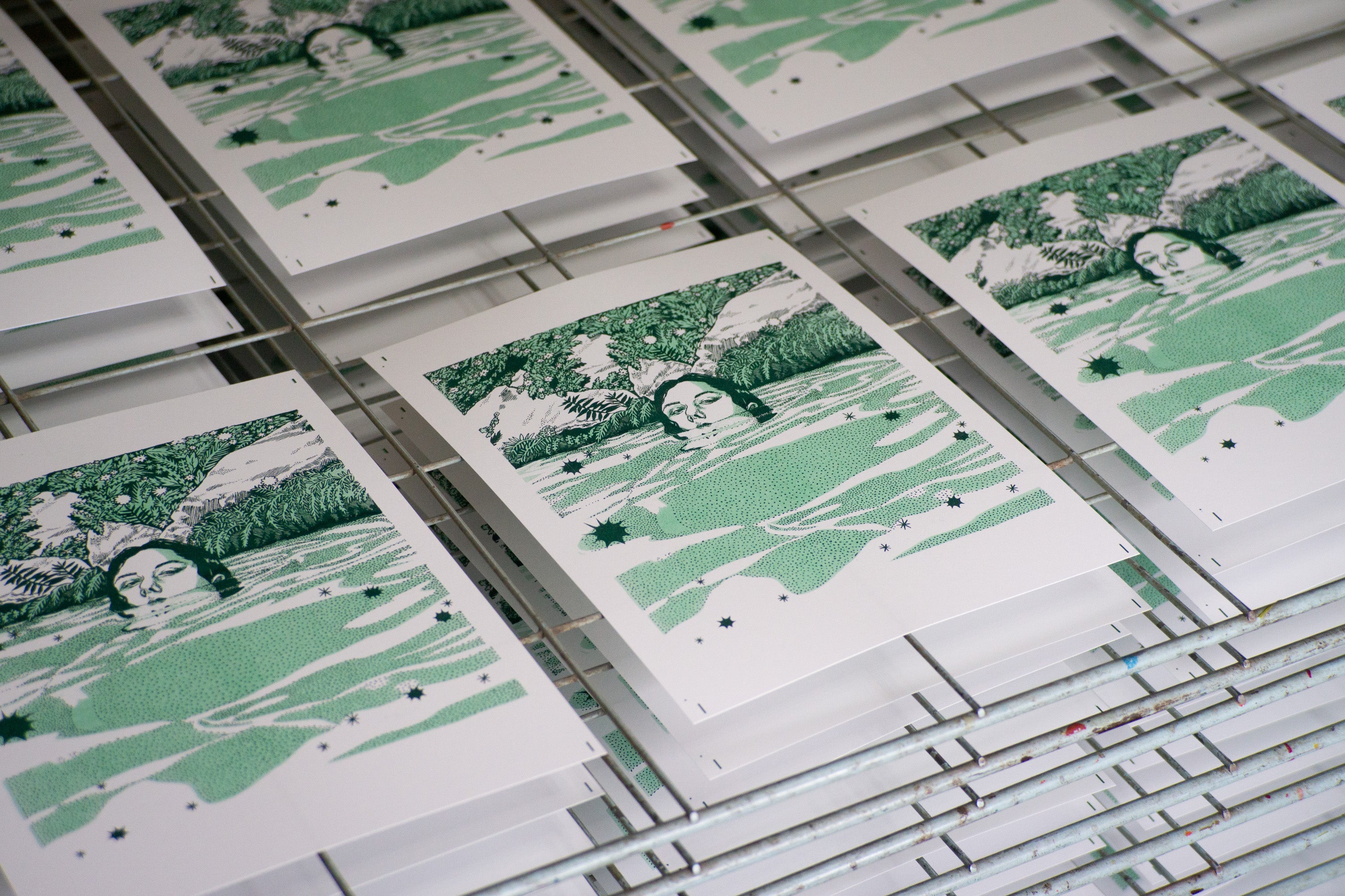 We think Riso printing is a good fit for artists and designers who want a screen printed result at a lower price point. The machine is designed for high speed printing, so it's not the strongest option for tight registration and precision. Rather than fight this, we recommend embracing it and letting the process itself add an extra element to your work. We think you'll find, like us, that doing so can help your prints to stand out from the sea of digital printing out there.