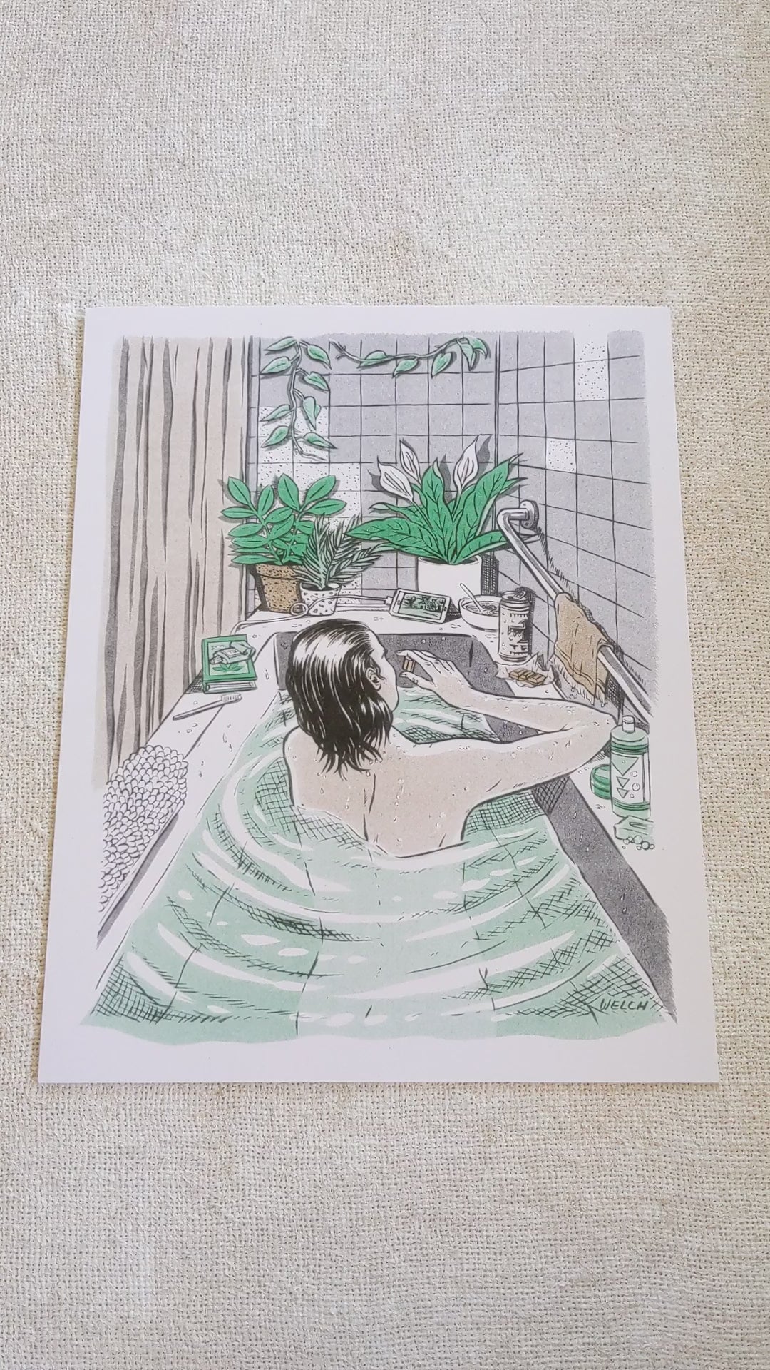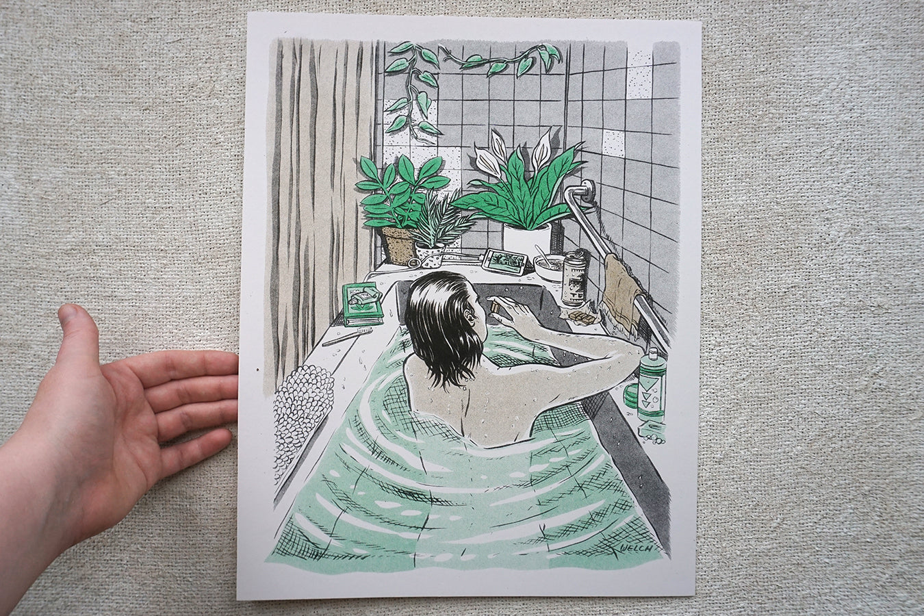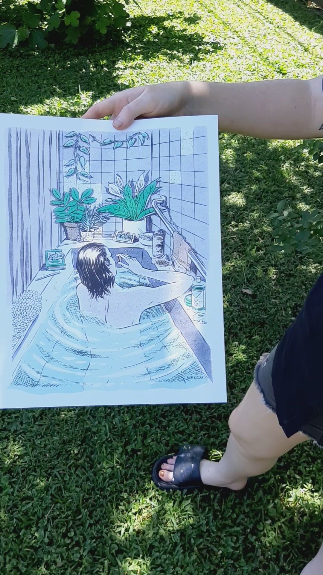 - Risograph Printed on 80# Cover, Starch White (11" x 14" version) or creamier Madero Beach (8" x 10" version)