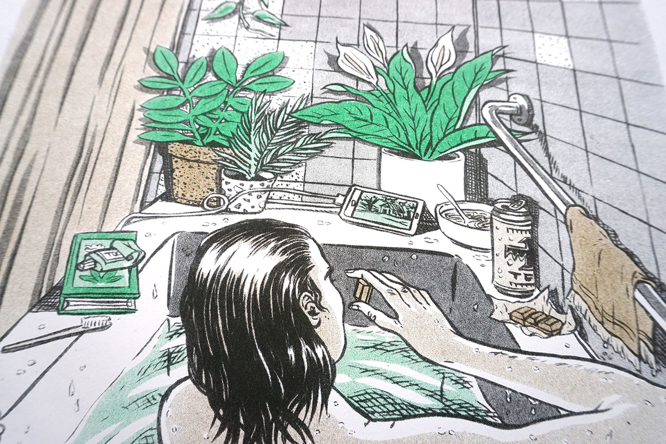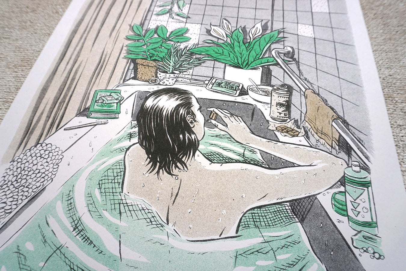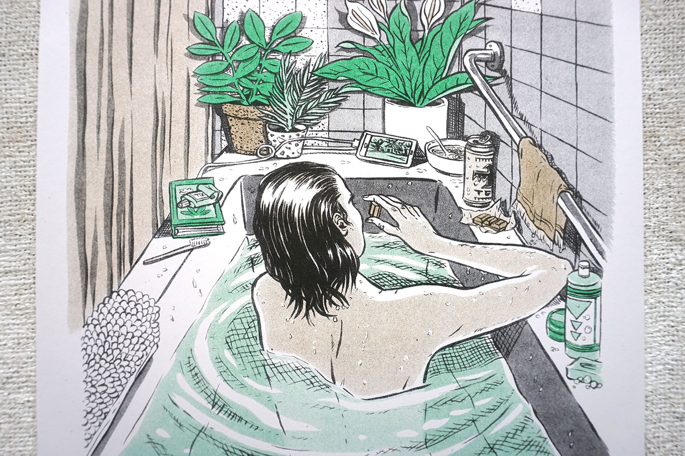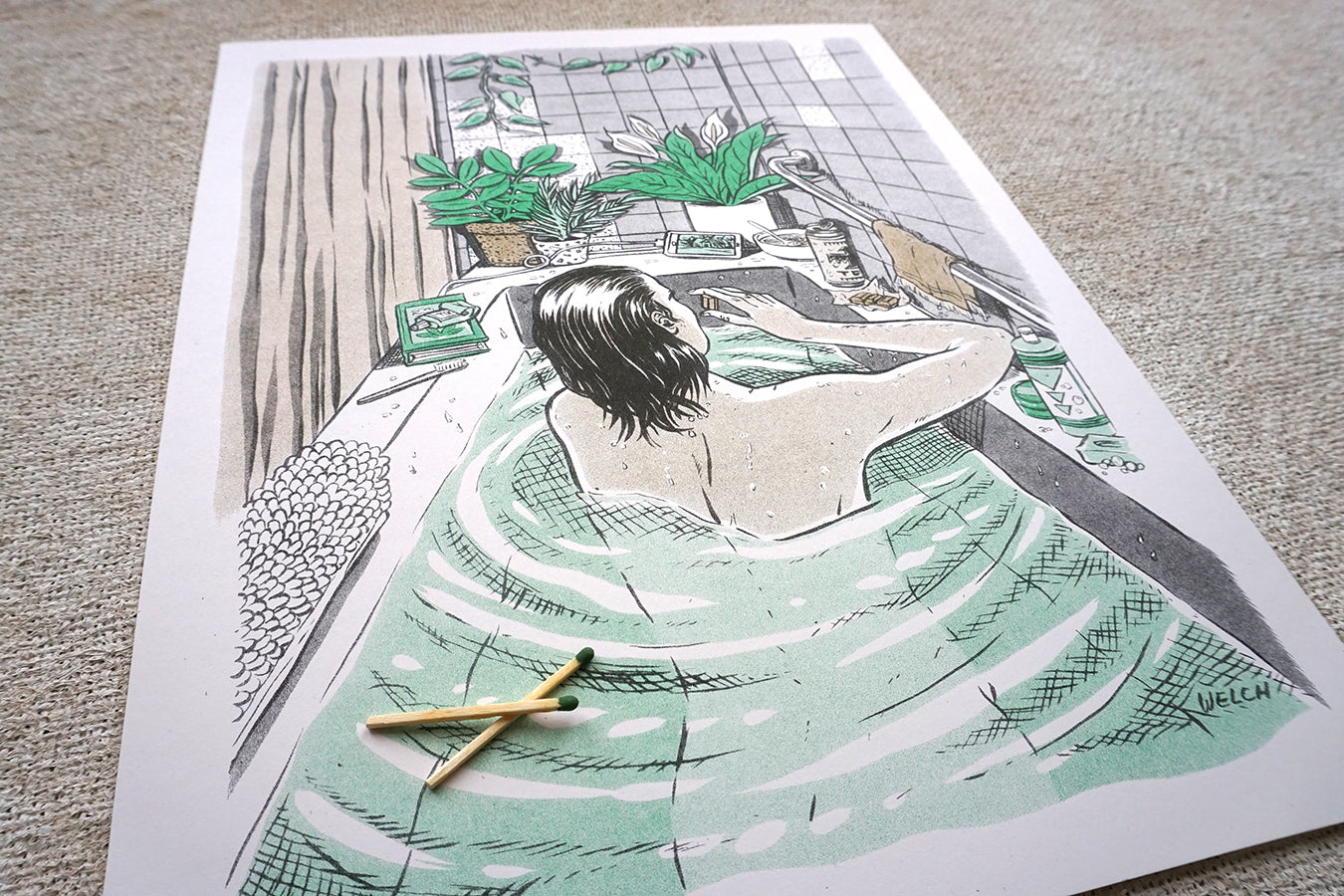 - Risograph Printed on 80# Cover, Starch White (11" x 14" version) or creamier Madero Beach (8" x 10" version)