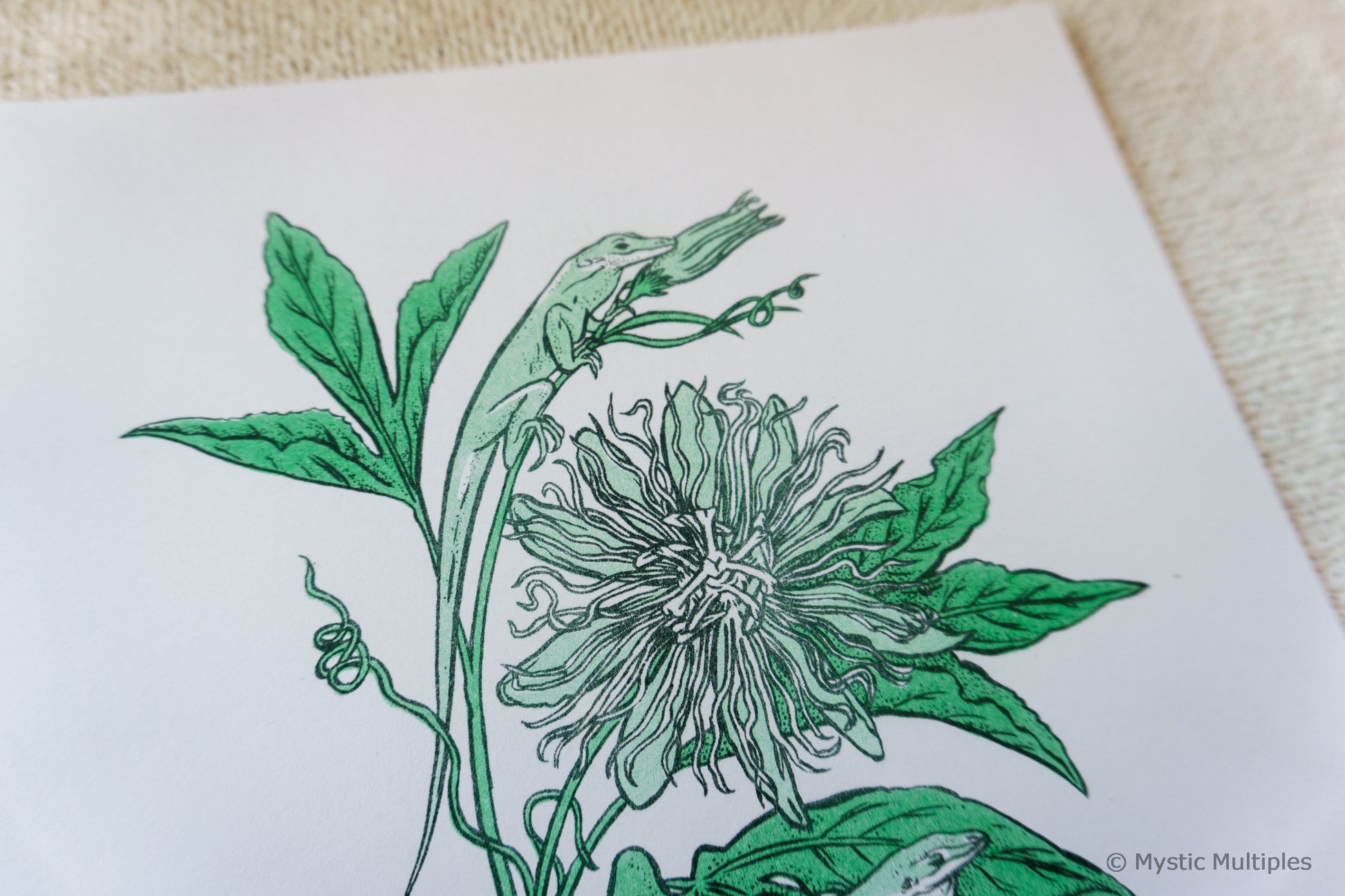 - Risograph printed on 63# / 170gsm white cover stock