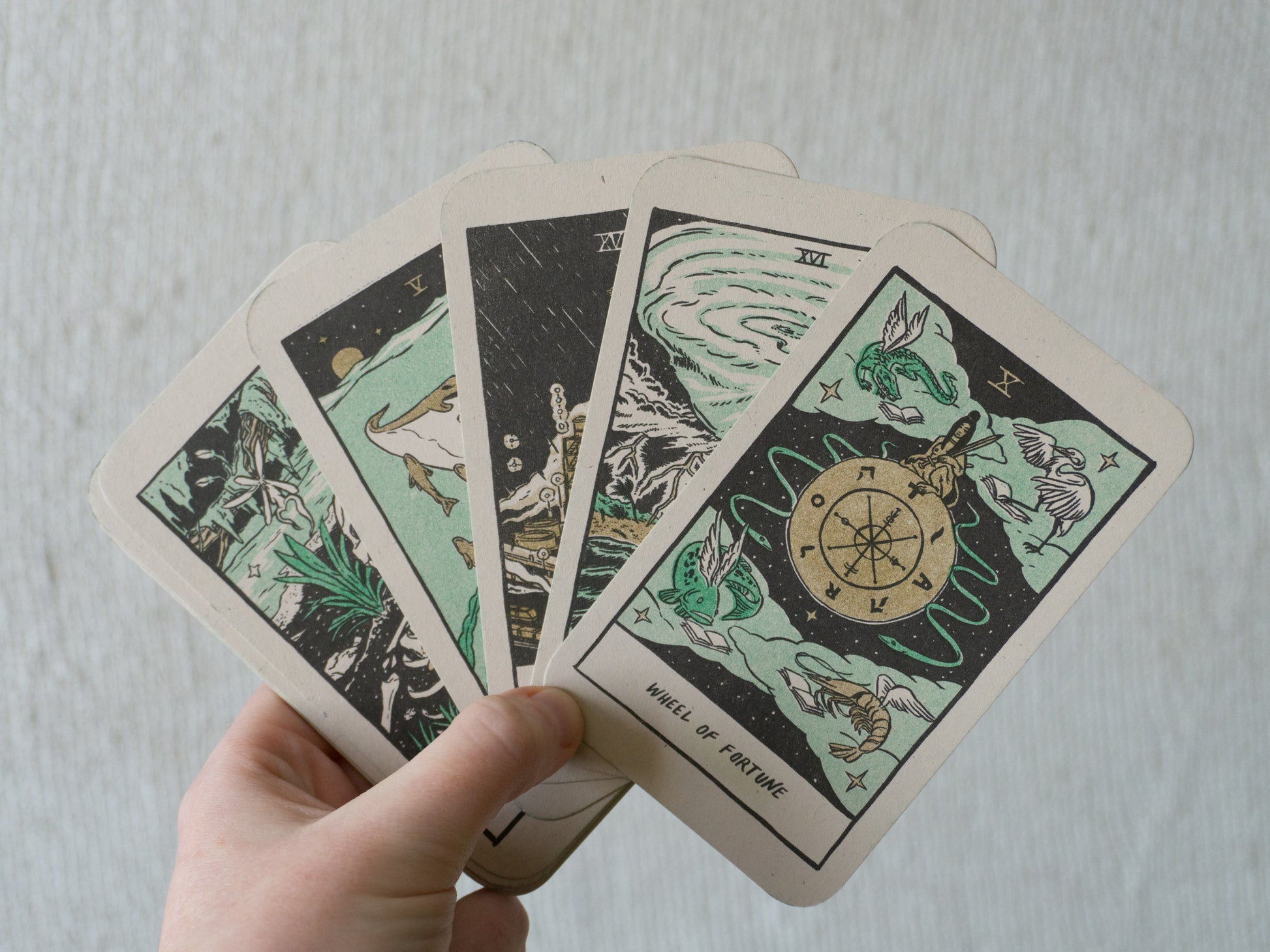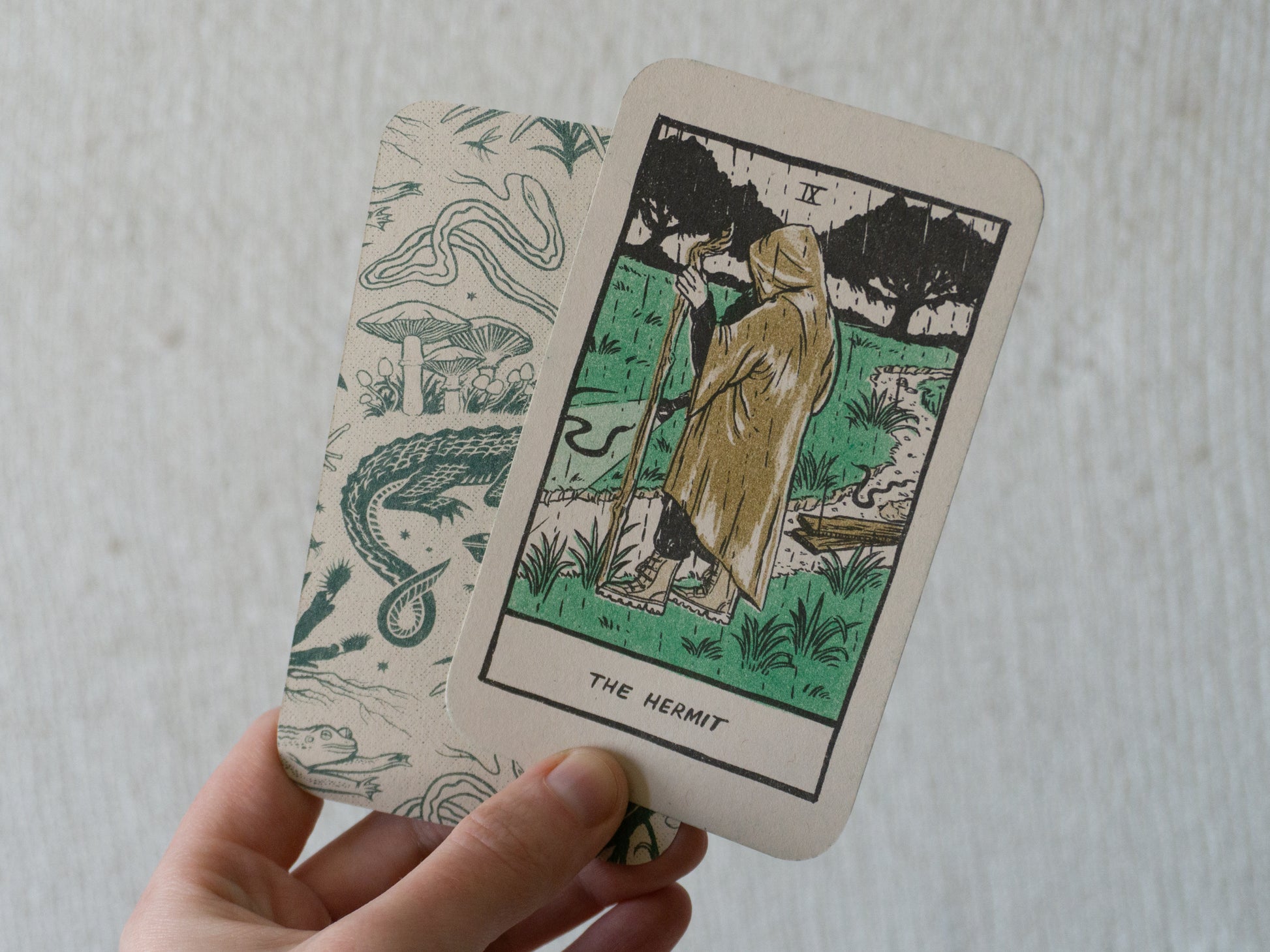 Please note! We produced this more as an art object. You may wish to use card sleeves or lamination to protect these cards if you wish to use them often. As always, risograph printing is known for its charming lack of alignment between colors. You printed deck will vary a bit from the pictures shown.