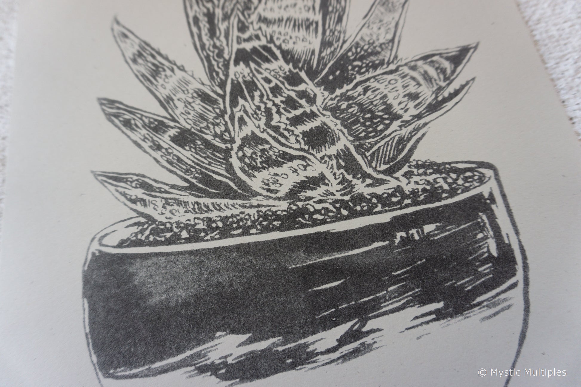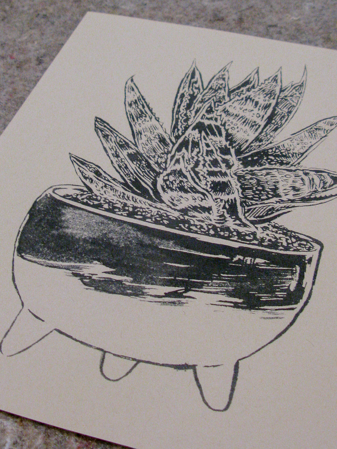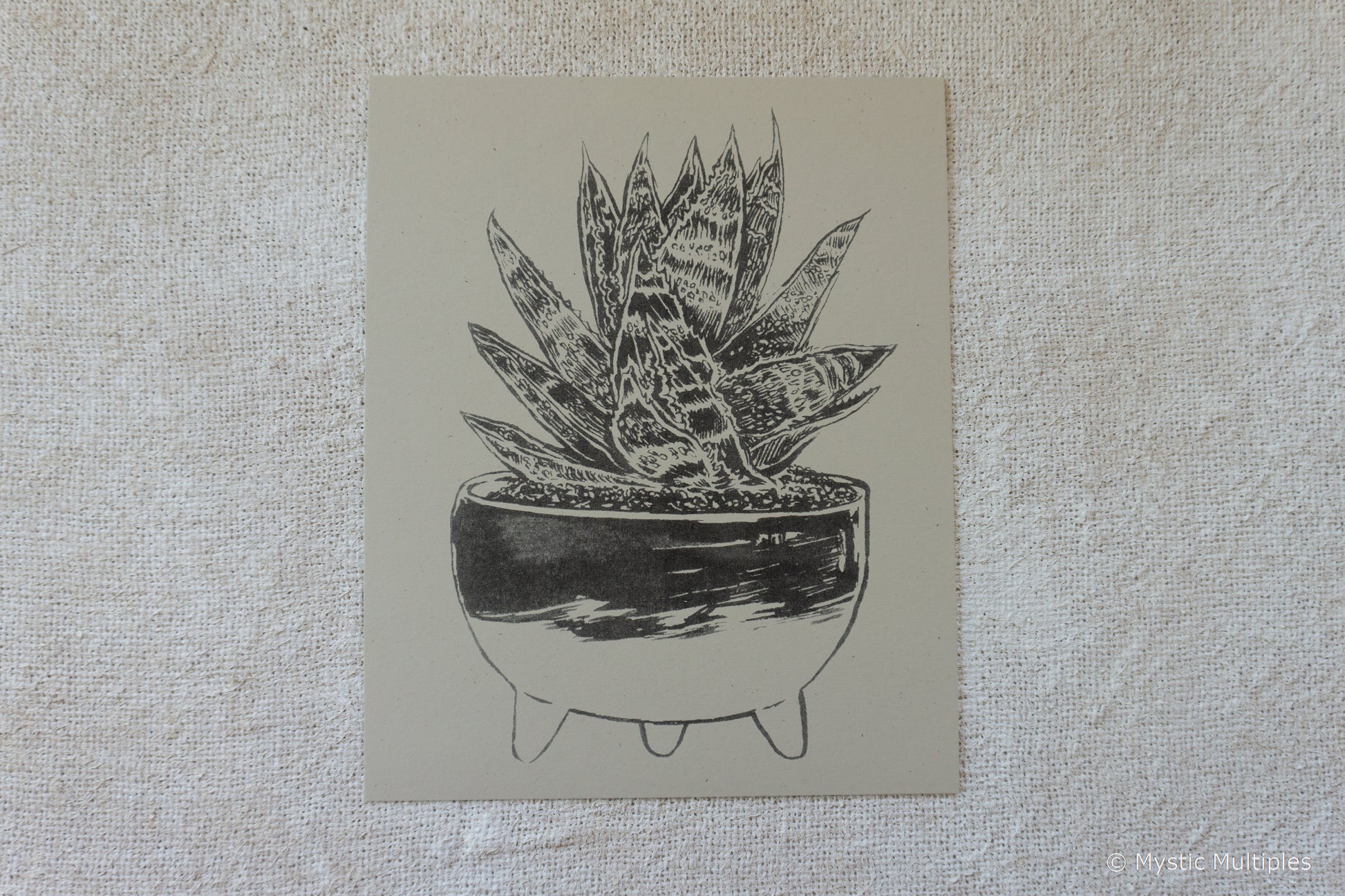 A tranquil, healthy Zebra Plant (Zebra Haworthia) thriving in it's molcajete habitat. Just embracing it's spiny, spiky, barky, thick skin and loving it. This print has all the house plant goodness without the need for water or light. Great for that dark cave-room that never has enough sun and likely already murdered a succulent or two.