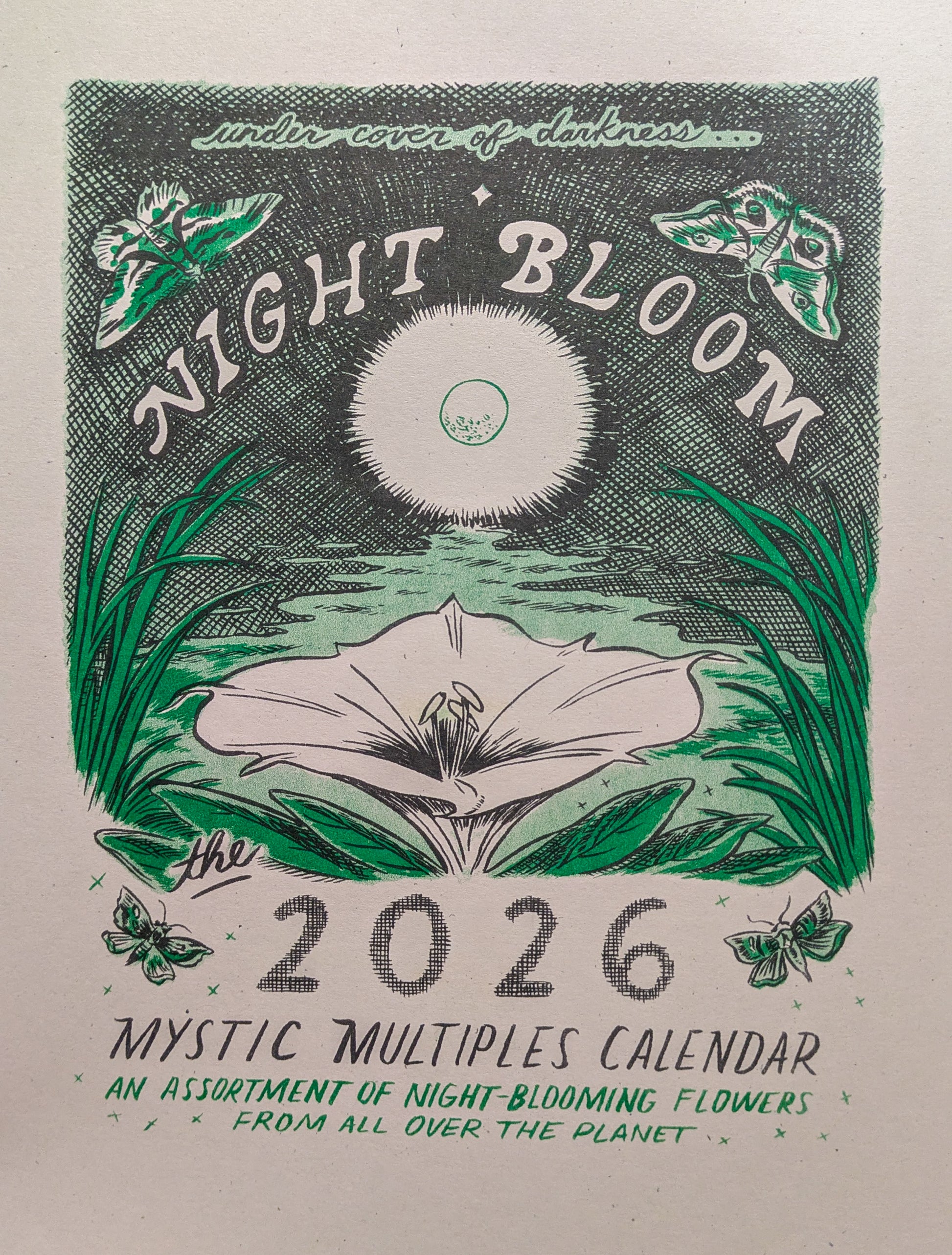By cover of darkness... night blooms! Our second annual calendar is an homage to those that do their business in the dark-- the night blooming plants! And, giving credit where credit is due, we're also featuring the full moons of 2026: the sturgeon moon, the harvest moon, the blue moon... they all bring their unique, seasonal energies to the show!
