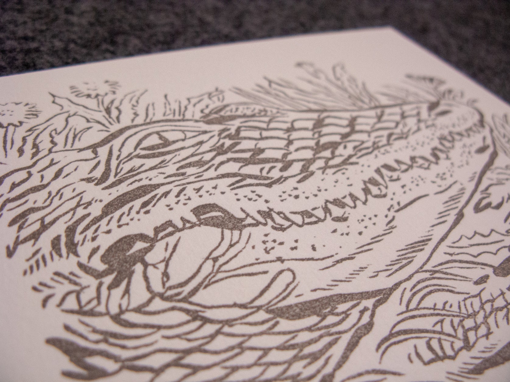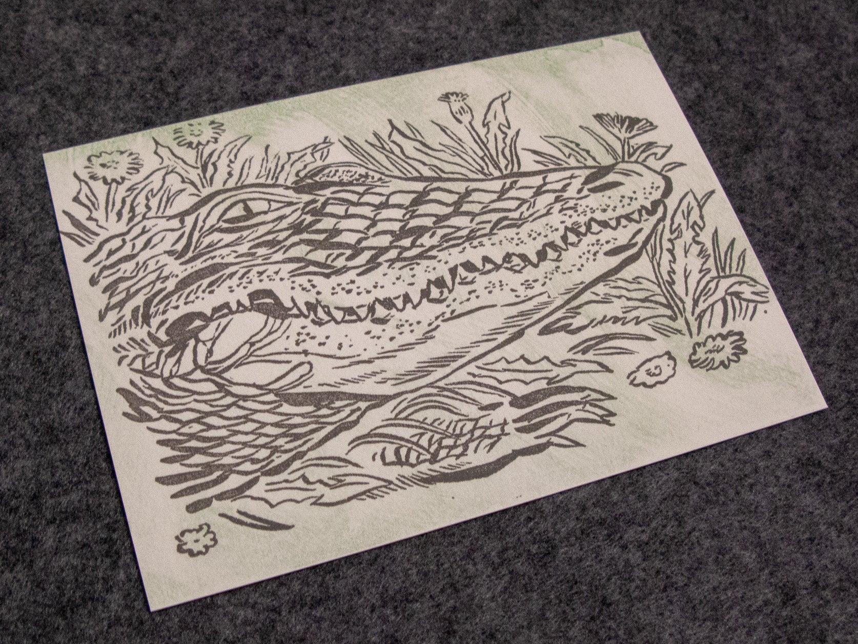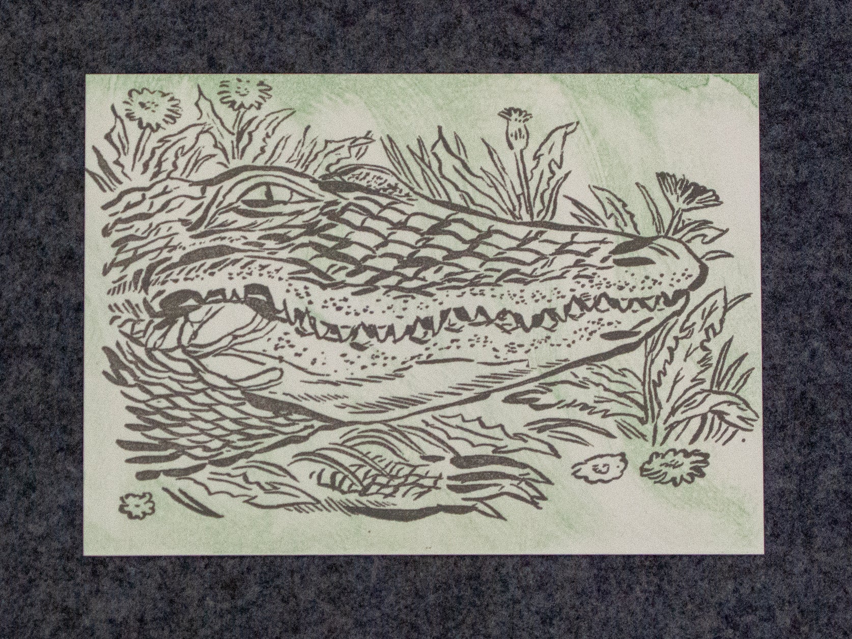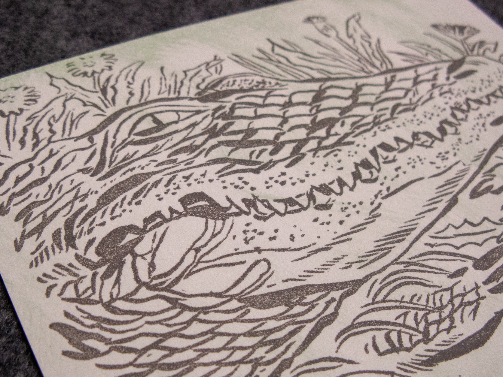 We have this print available with a slight green, monoprint background as well. Please let us know if you prefer an embellished print, or a normal one.